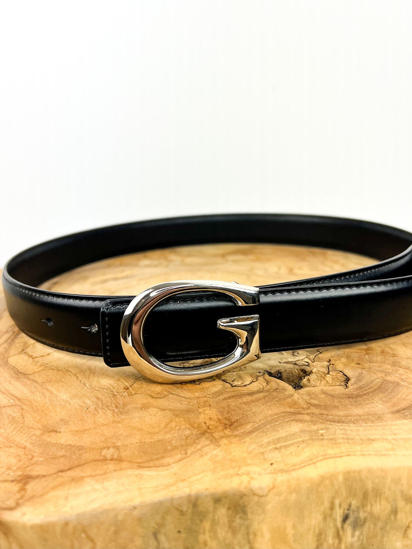 Gina Leather Belt in Black & Silver