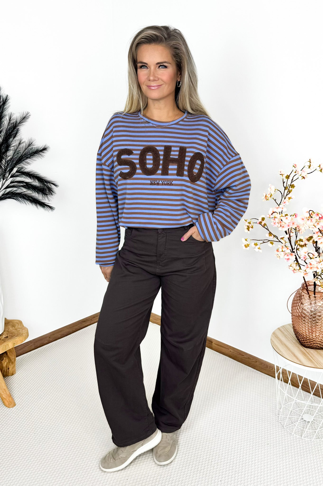 Soho Sweater in Chocolate & Blue