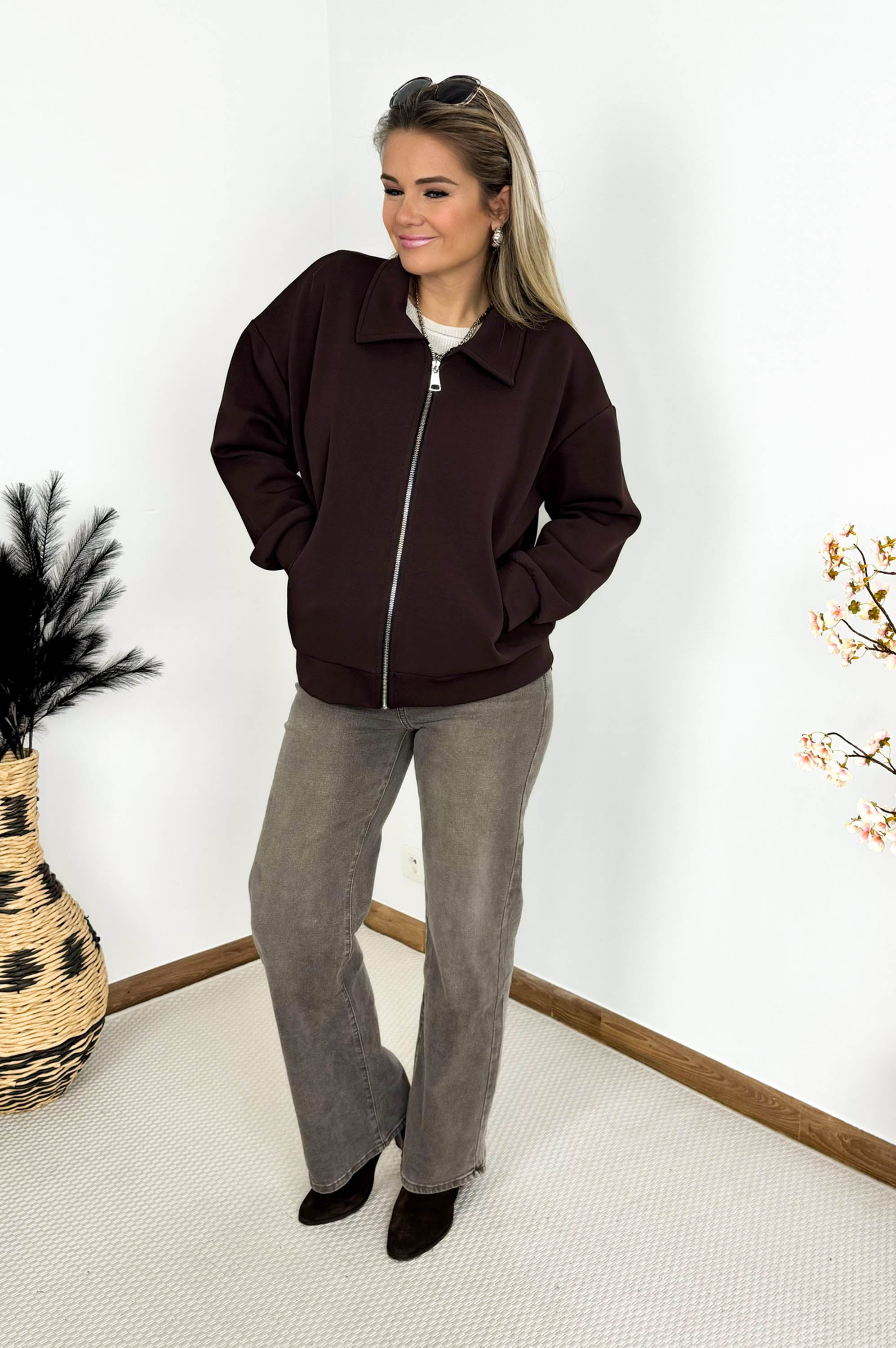 Prisca Zipper Jacket in Chocolate