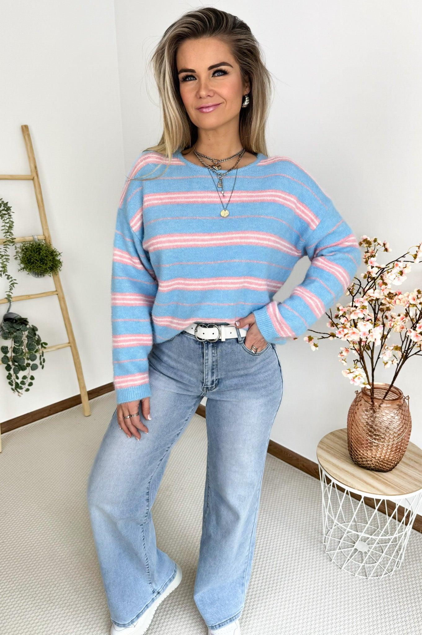 Holly Striped Knit in Light Blue & Pink