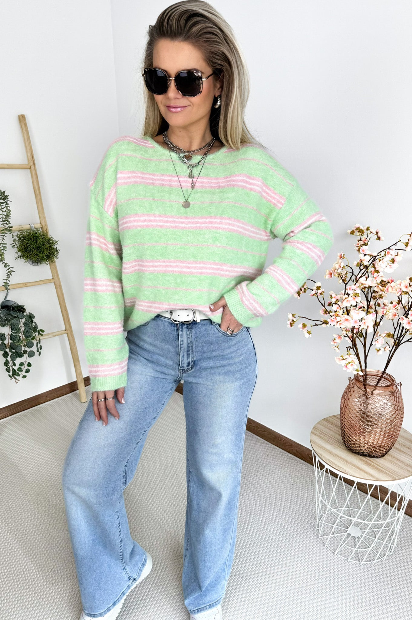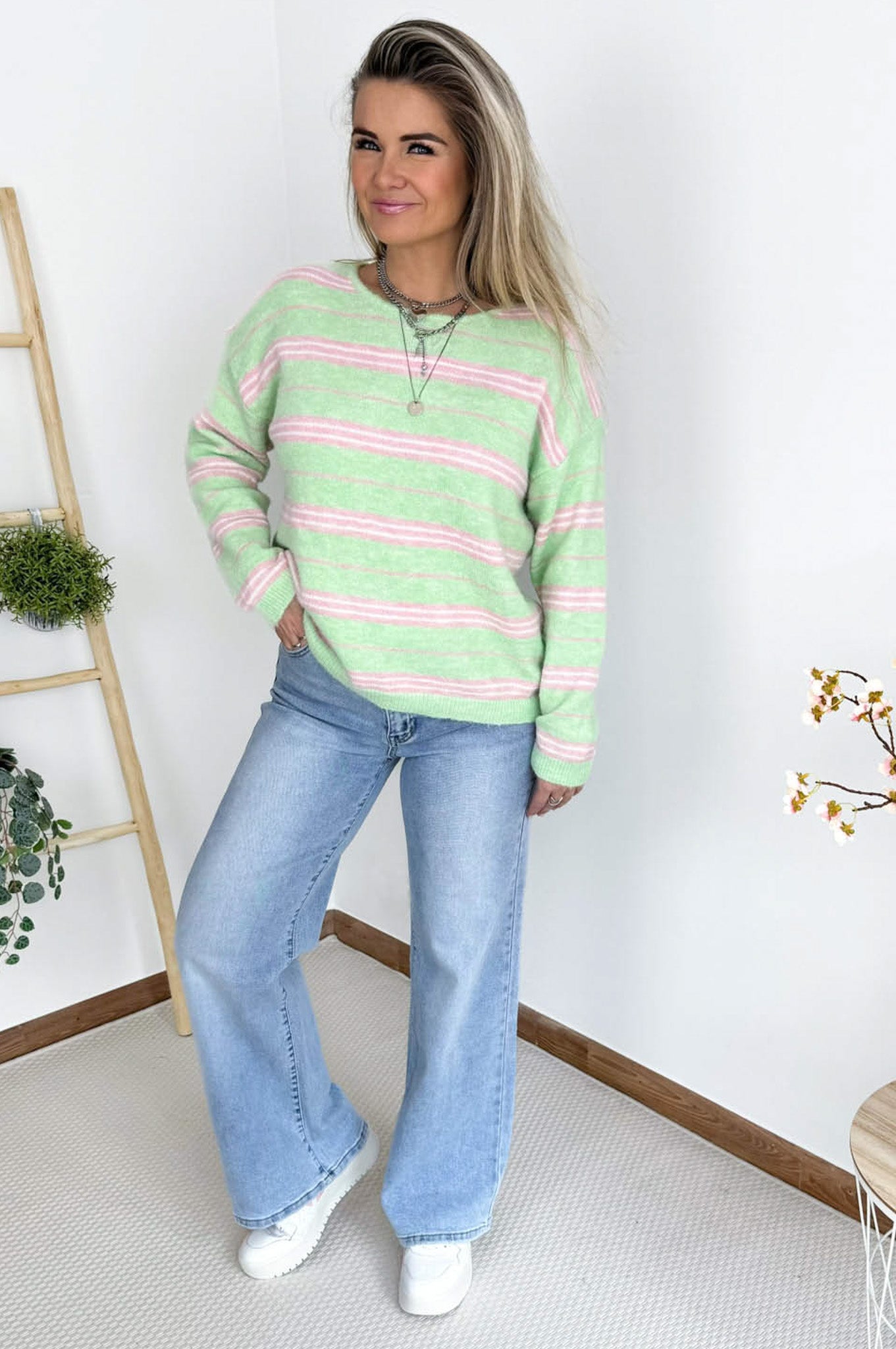 Holly Striped Knit in Mint & Pink